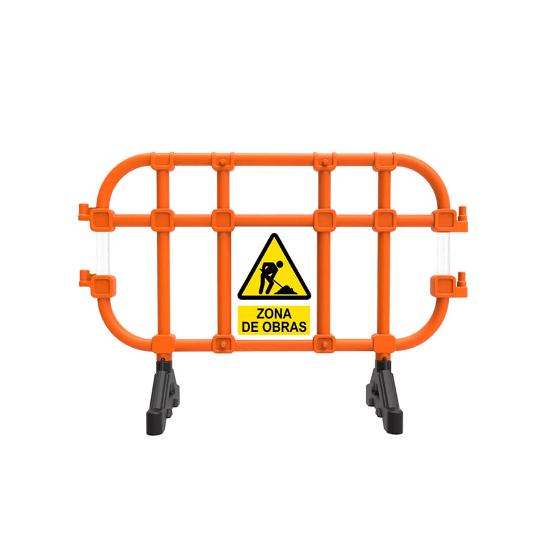 Fabricada en polietileno de alto peso molecular. Las patas se giran 90° para ahorrar espa cio en el almacenamiento o transporte, además de que pueden ser ligeras o relle nables para mayor estabilidad. Con área para señalamiento o publicidad.