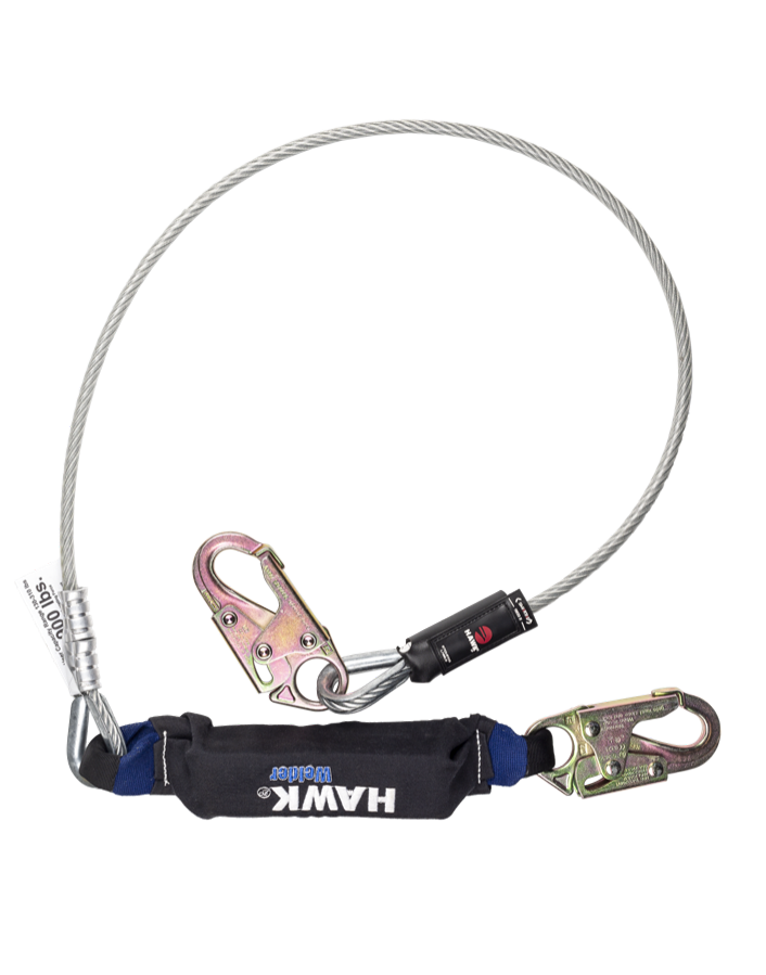 Descripción: Línea de acero que sirve para asegurar el arnés a un punto de anclaje, cable de acero galvanizado semi-flexible con recubrimiento de vinil, cuenta con dos ganchos chicos.