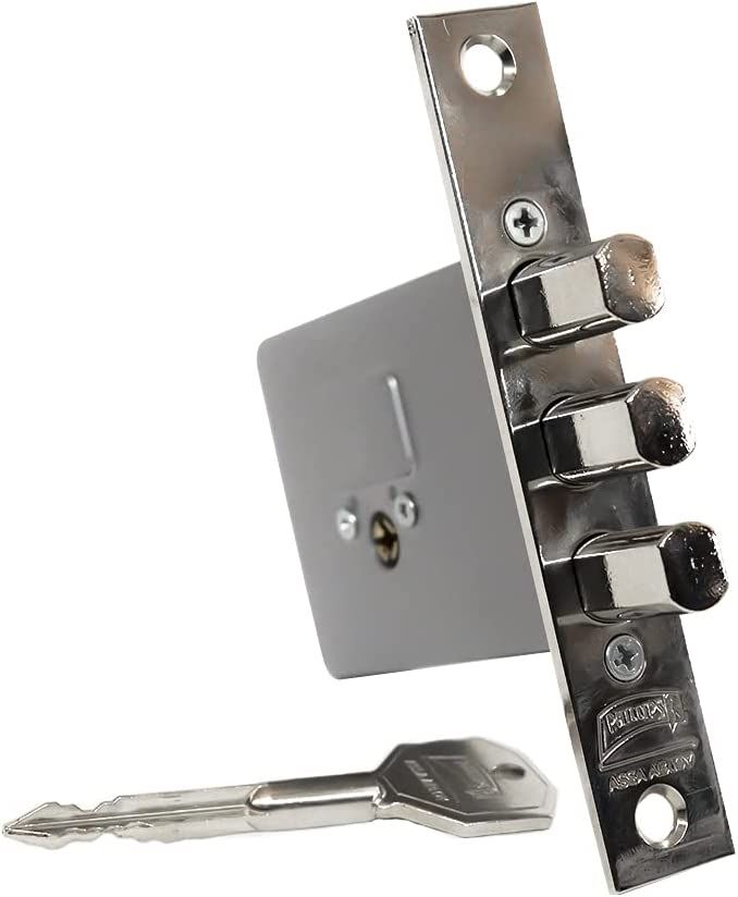 Cerrojo con 3 bulones de acero de dos pasos con accionamiento de llave por ambos lados