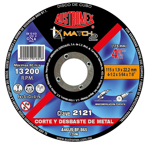 Disco para corte y desbaste de metal 4-1/2 Pulg 2121 Austromex
