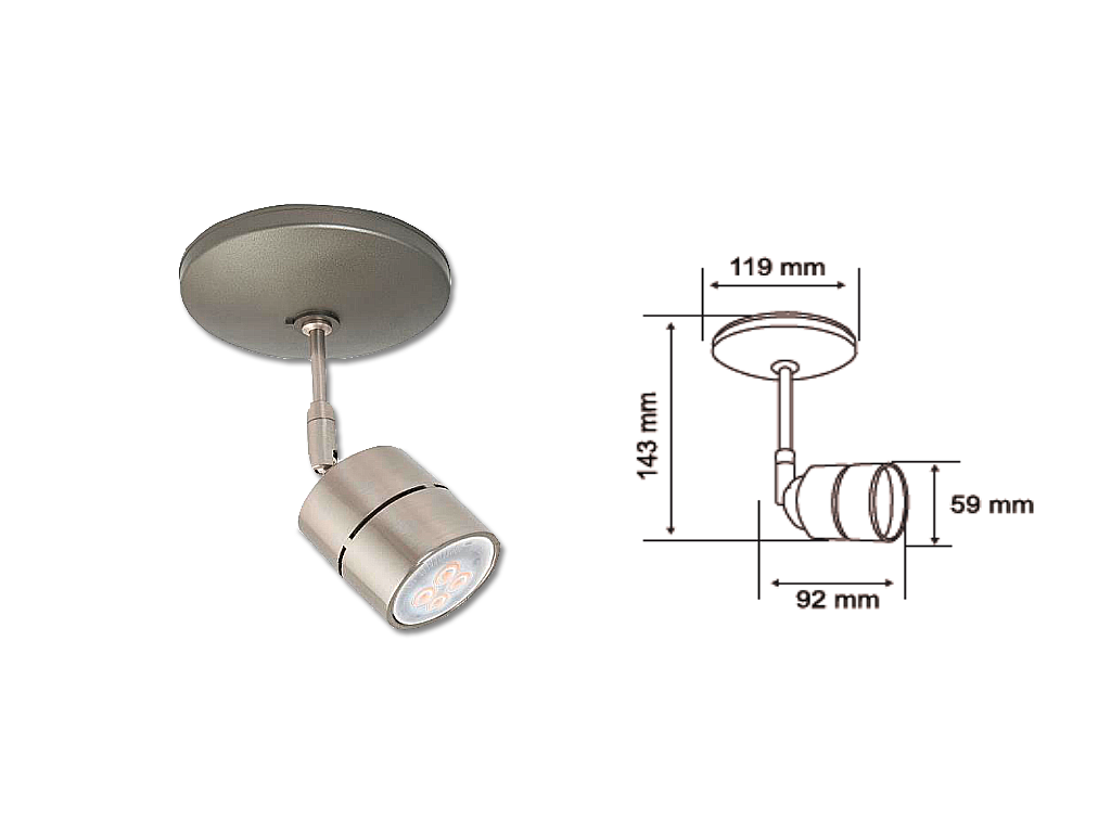 LAMPARA SPOT PARA TECHO,DE BASE,GU10,COLOR PLATA SATINADO TECNOLITE 60YSN368LMVS