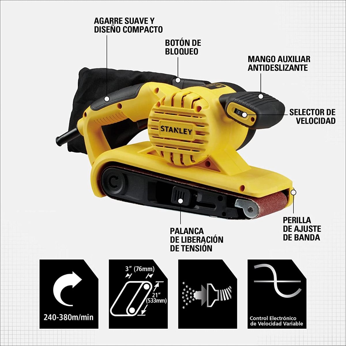 Lijadora de banda 900W 3X21 Pulg VV SB90 Stanley